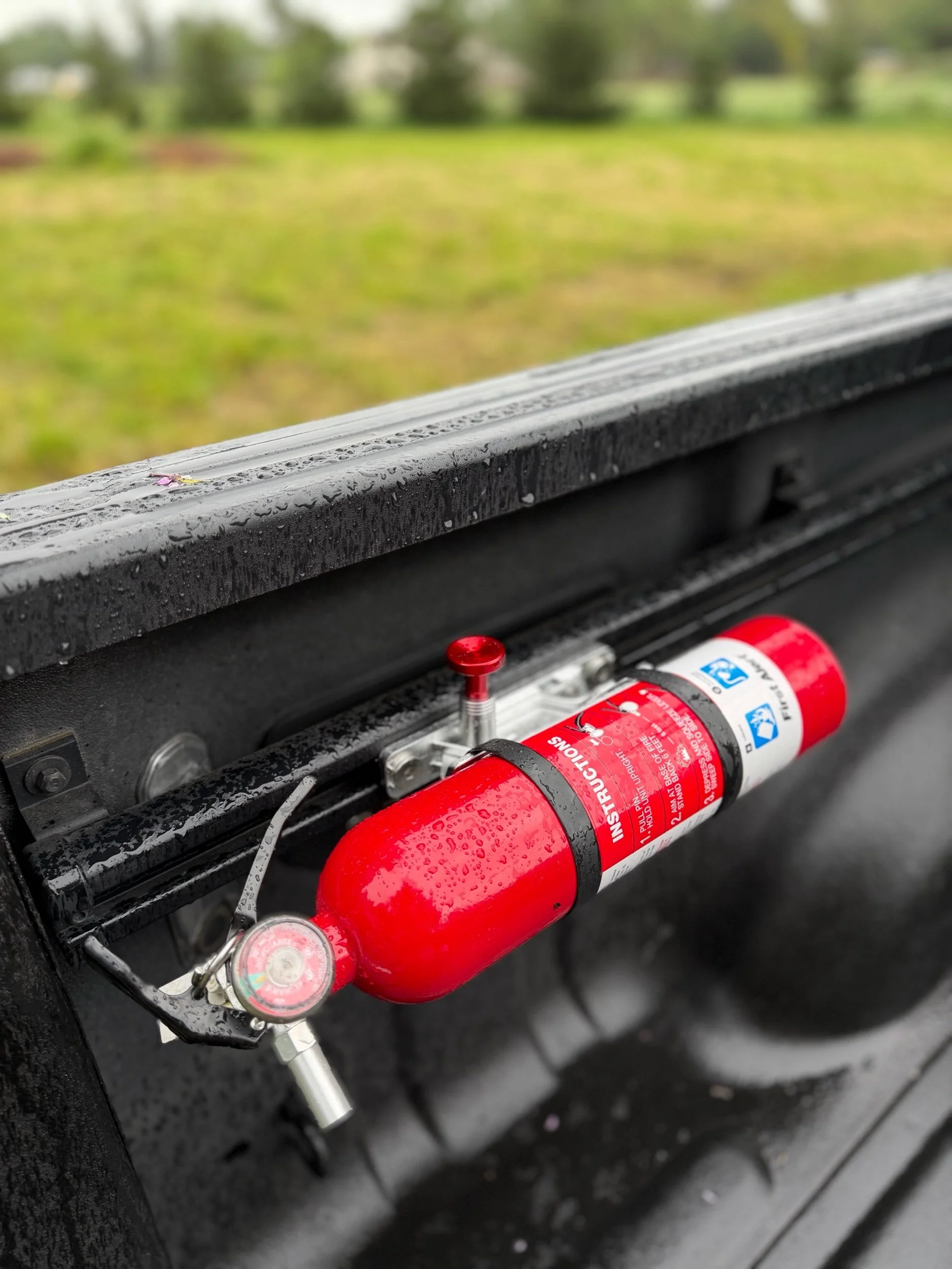 The Bed Utility Fire Extinguisher Mount provides a secure, quick release mounting solution for 2.5lb fire extinguishers, keeping safety within reach on and off the trail. The bolt-on design mounts directly to Ram OEM bed utility rails with no cutting or drilling required, allowing installation on either side of the bed with full adjustability. Features a quick-release mechanism for fast access in emergencies. Includes all necessary mounting hardware.